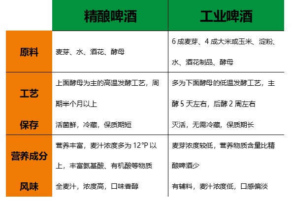 表格 1 精釀啤酒與工業啤酒的區別